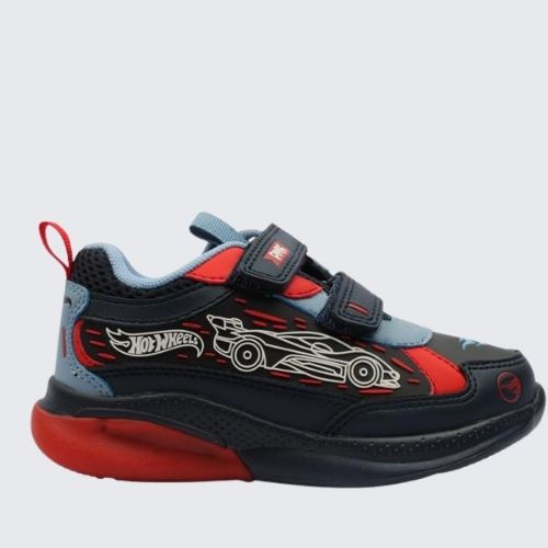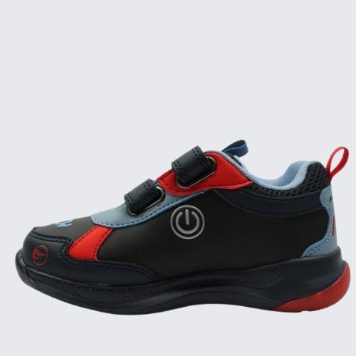 Rev up your little racers style with these Primigi Hot Wheels runners, designed for comfort, fun, and everyday adventures. Featuring a bold racing car motif on the side that lights up with flashing LEDs, these sneakers are sure to grab attention both on and off the track. The red light-up sole adds extra excitement with every step, while a convenient on/off button at the side lets kids control the lights with ease. For practicality, the shoes come with double Velcro straps and a fold-down tongue to make fitting quick and fuss-free. Inside, removable leather insoles provide breathable comfort and support for growing feet.