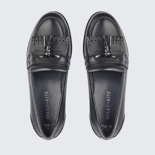 For senior kids who want classic style, look no further than our slip-on loafer Sketch in a smart black leather. This specially made loafer has a precision fit to prevent feet slipping, with cushioned insoles and a soft leather upper to keep feet comfortable all day. We've added subtle touches with the tassel and fringing for a stylish finish and you'll find our new Air-Rite technology which helps keeps feet cool and reducing sweating. Better suited for those without a high instep.