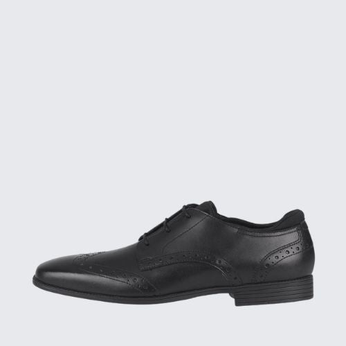 A smart school lace-up for boys who want to put their best foot forward. Tailor has a mature shape, which will appeal to primary age boys looking to step it up a level. Crafted from premium dyed through black leather with brogue detailing. Perfectly positioned soft padded ankle gives all day comfort and support.